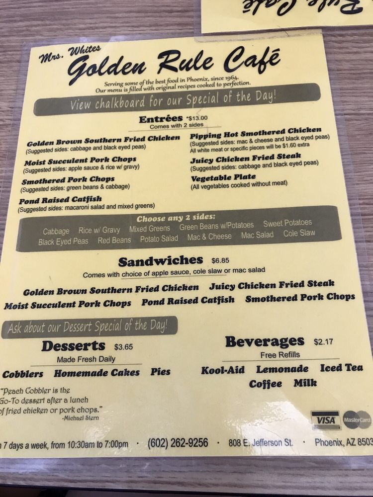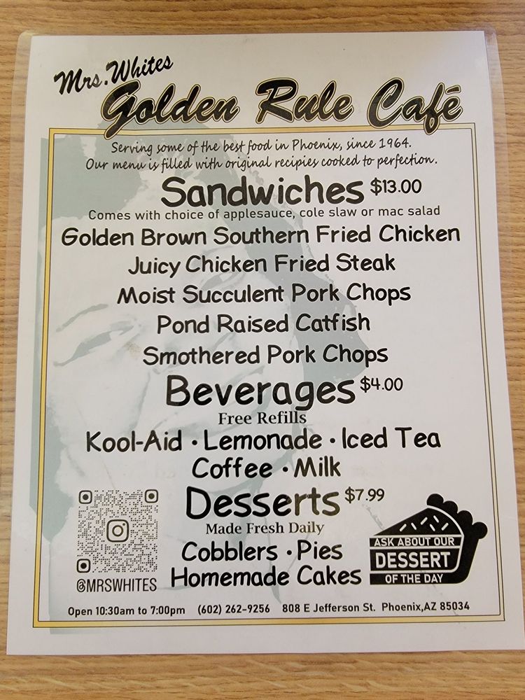 Welcome to Mrs White's Golden Rule Cafe, a charming spot located in the heart of Phoenix at 808 E Jefferson St. This delightful eatery strikes a perfect balance between comfort and cuisine, offering a menu that caters to all dietary preferences, including numerous vegan and vegetarian options.